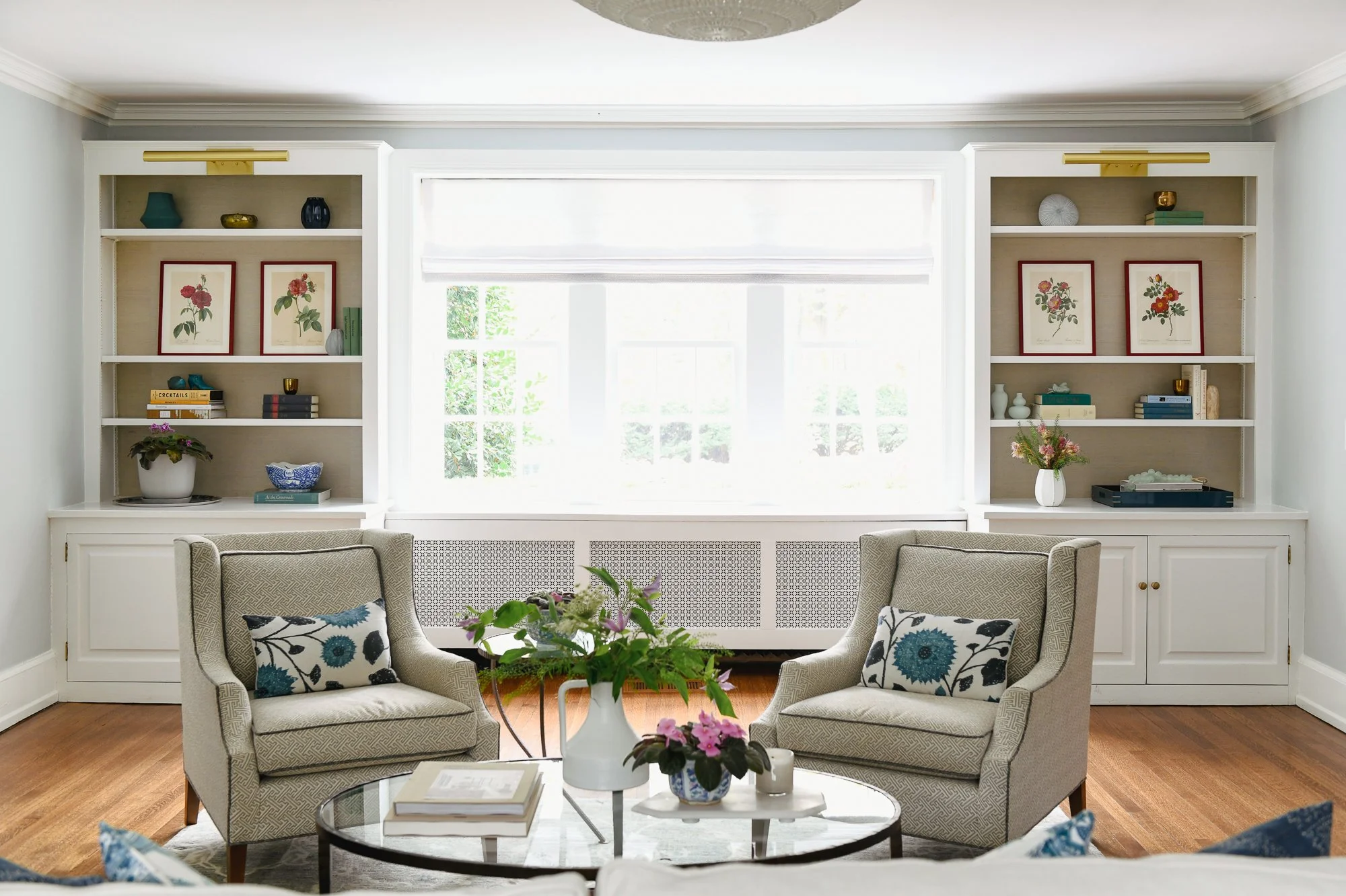 This historic home was in need of some serious care after a bit of neglect by previous owners resulting in years of insufficient maintenance. An extensive lighting plan and refinished flooring throughout laid the base work while extensive remodels to all of the bathrooms and kitchen brought things up to date. The exterior was brought back to life with repaired trim, new paint colors and door hardware and lighting. Kitchen windows were replaced with french doors for better outdoor patio connections. Lastly, the dining room, living room, powder room, foyer and sunroom were all infused with new interior designs, furnishings and fittings befitting of this gracious home.